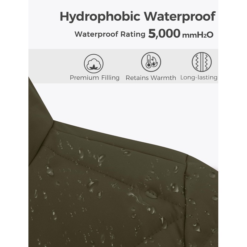 - Full Body Protection - Protect yourself against mild wind, snow, and rain with the winter jacket for women. The puffer jacket is made with DWR finish, and PU membrane. With 3,000mm waterproof rating, the long puffer coat keep you dry in the rain or warm in snowy weather at all times.