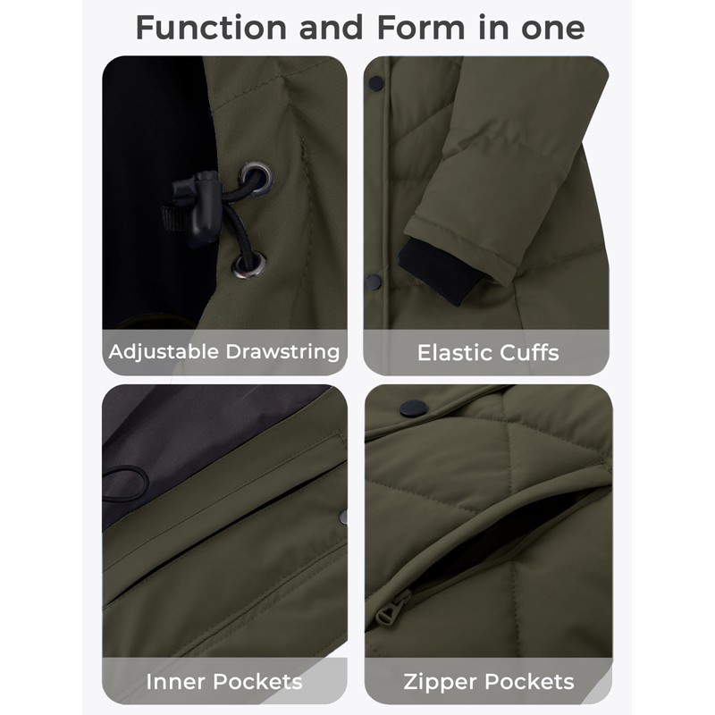- Made for Women - The waterproof women's coat boast 3 pockets that keep essentials like phones or passports within reach. An invisible drawstring of the winter jacket flatters your figure and lets you adjust your silhouette as you please.