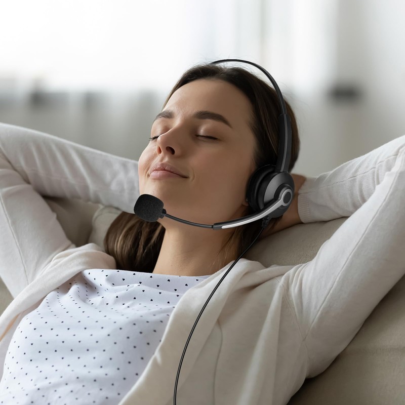 - 【ERGONOMIC DESIGN】 - The headset's super soft ultra fiber leather ear cushions are encased in pillowy soft memory foam to provide all-day comfort. The ultra-lightweight headset design and adjustable headband allows you to focus on calls and reduce pressure on your ears, without fatigue