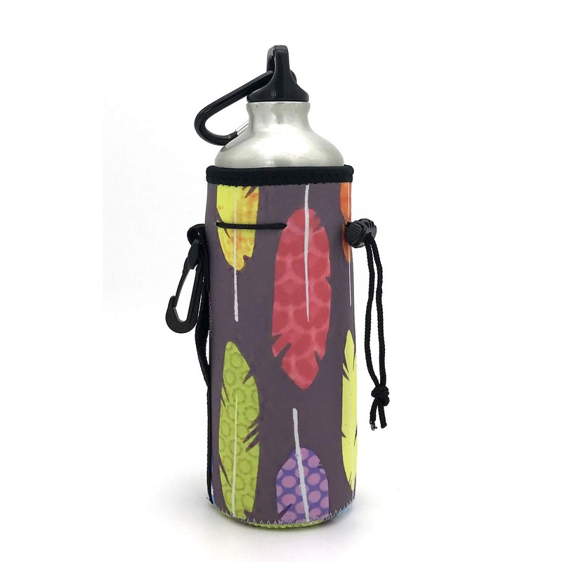 Wanty Neoprene 20 Oz Insulated Water Drink Bottle Cooler Carrier Cover Sleeve Tote Bag Pouch Holder Strap for Climbing Cycling and Running Outdoor Activities (Feather)