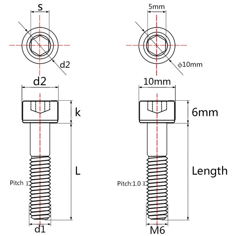 - Thread Pitch : 1mm;Hex Width : 5mm/ 0.2";Weight:5.9g/Piece;Standard: DIN912