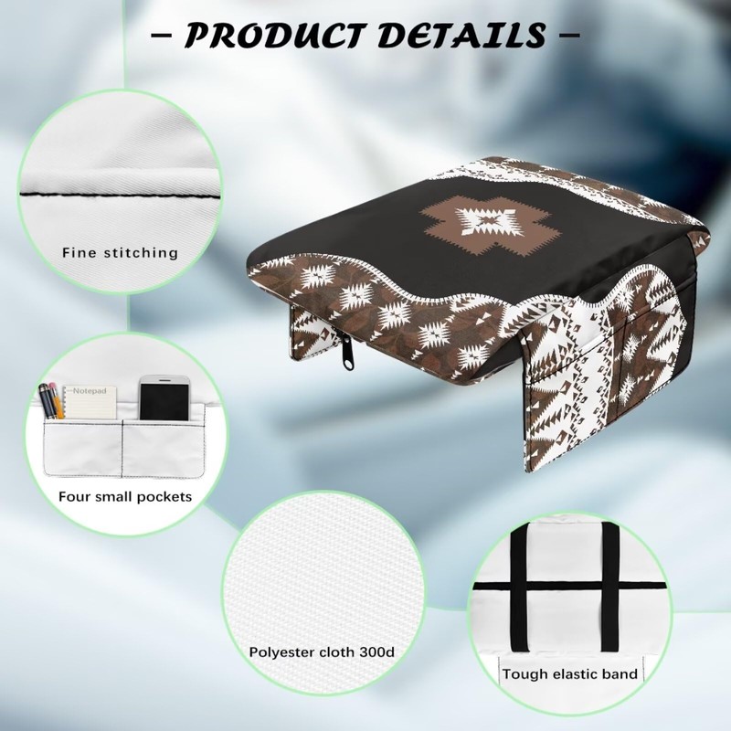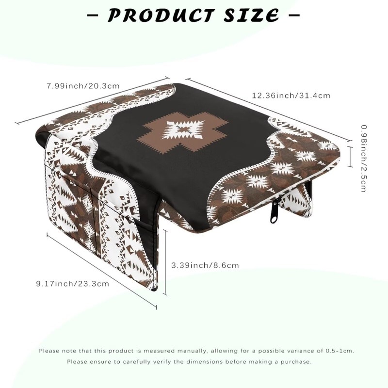 Wanyint Southwest Aztec Black Brown Car Center Console Cover Comfortable Armrest Storage Box Mat Anti-Scratch Middle Console Cover Protective Cover Universal Fit Most Vehicle, SUV, Truck