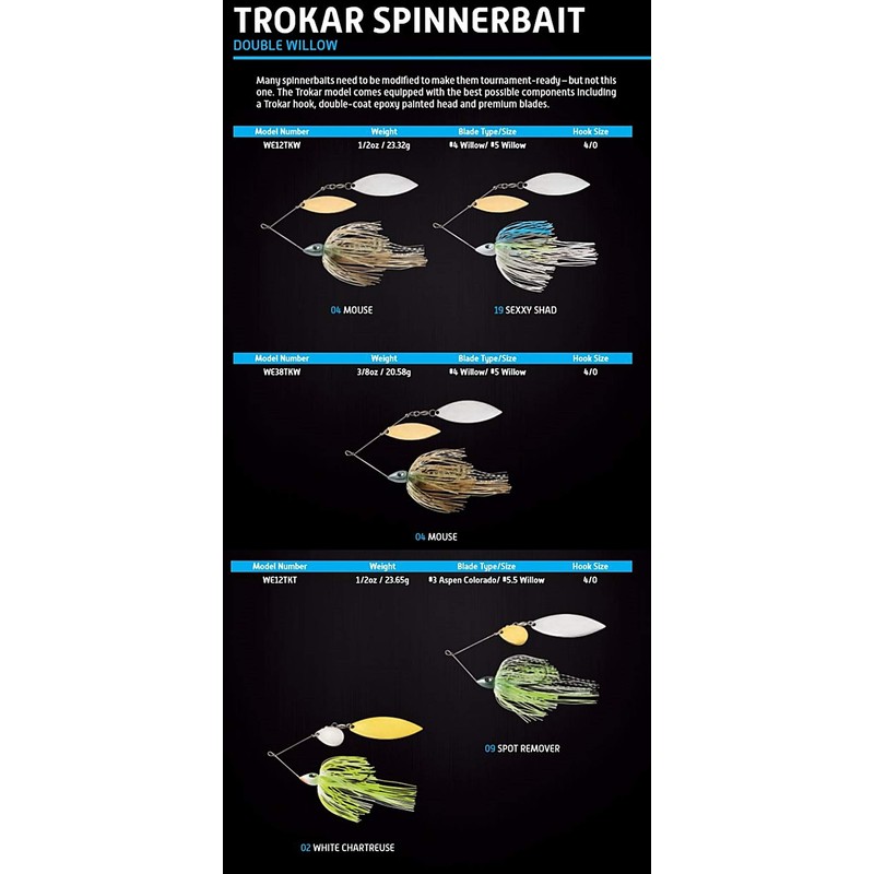 War Eagle Custom Lures Trokar Spinnerbait Tournament-Ready Fishing Lure, White Chartreuse, Tandem Willow (1/2 oz)