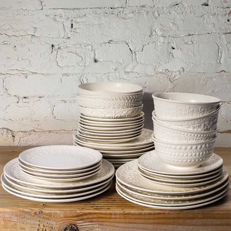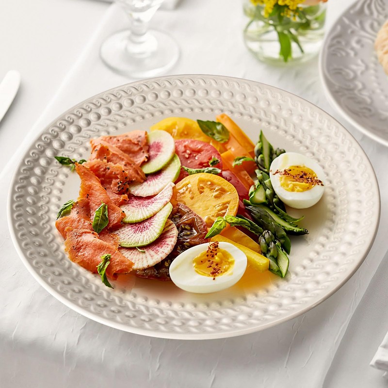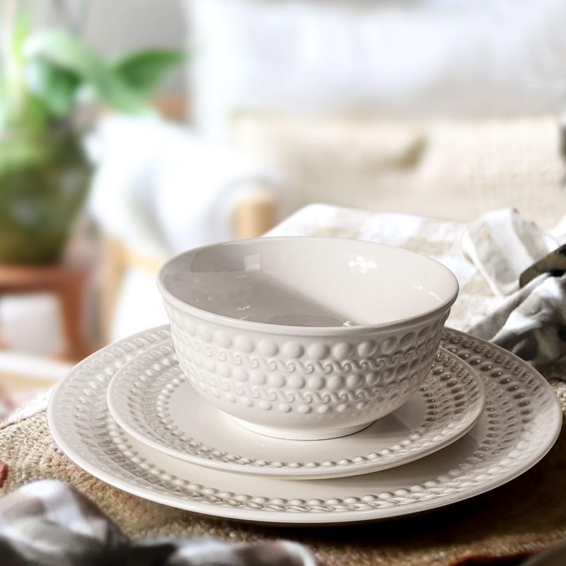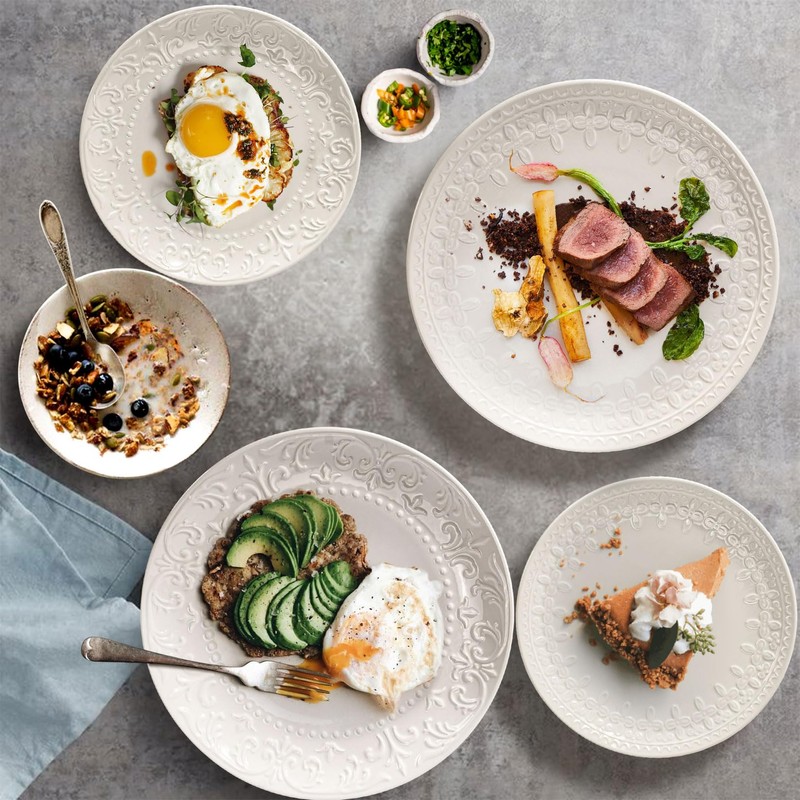 - 【Embossed Wide Rim Design】Detailed with an intricately embossed pattern around its rim, our large dinner plates gives every meal a stunning yet serene flair, with a deep shape that accentuate the foods more attractive in sturdy premium ceramic. The middle of the plate is flat and smooth, which is very nice for placing or cutting food, its beautiful rims that gives you a nice grip for every meal.These plates offer the perfect blend of durability and elegance.