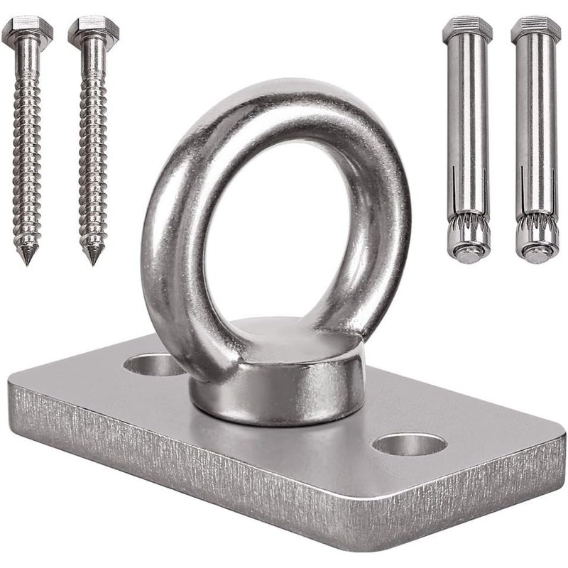 - EASY TO INSTALL: 304 Stainless Steel plate easily attaches to a wall, vertical stud or secure overhead beam, include 2 expansion bolts and 2 wood screws,there are two holes in the base of the swing hanger and use screws through this hole to fix it on the concrete ceiling or wooden beam. A unique one piece design and can be installed in minutes.