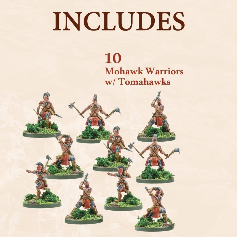 Wargames Delivered - Mythic Americas Nations: Mohawk Warriors with Tomahawks - 28mm Miniatures - 10 Metal Infantry, Digital Bundle - Action Figures Model Kit by Warlord Games