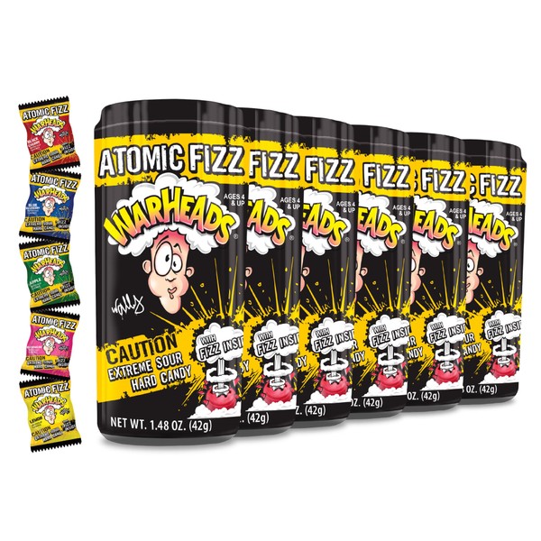 - WARHEADS ATOMIC FIZZ are the Extreme Sour Hard Candy you love, with an explosive fizzing center to tantalize your tastebuds. Includes 5 flavors of individually wrapped sour candy and a reusable canister for storing your favorite sour treats.