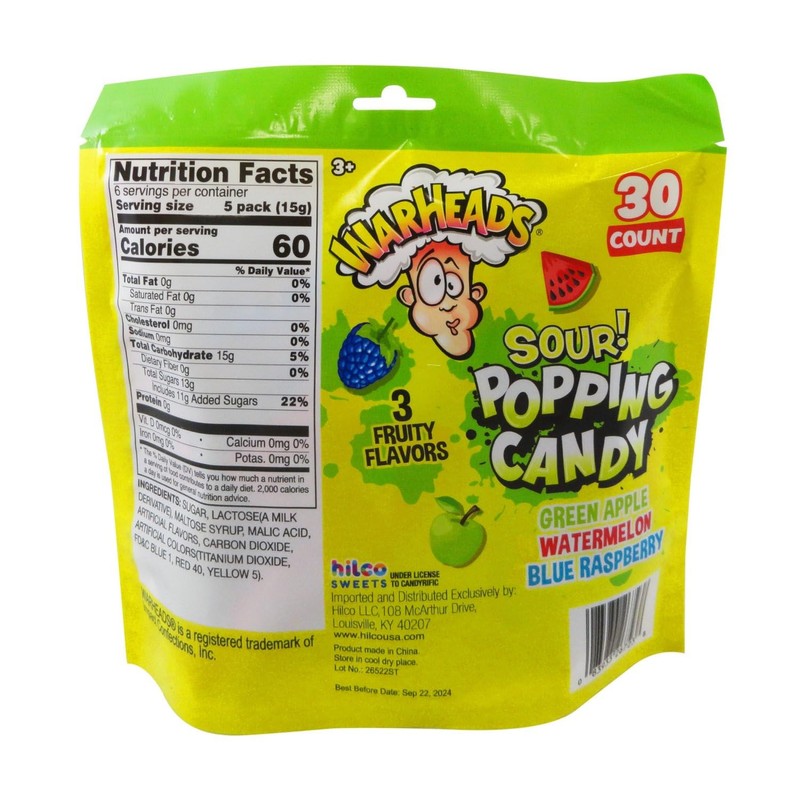 | Flavor: | Sour Popping Candy (30ct Variety Bag) |
