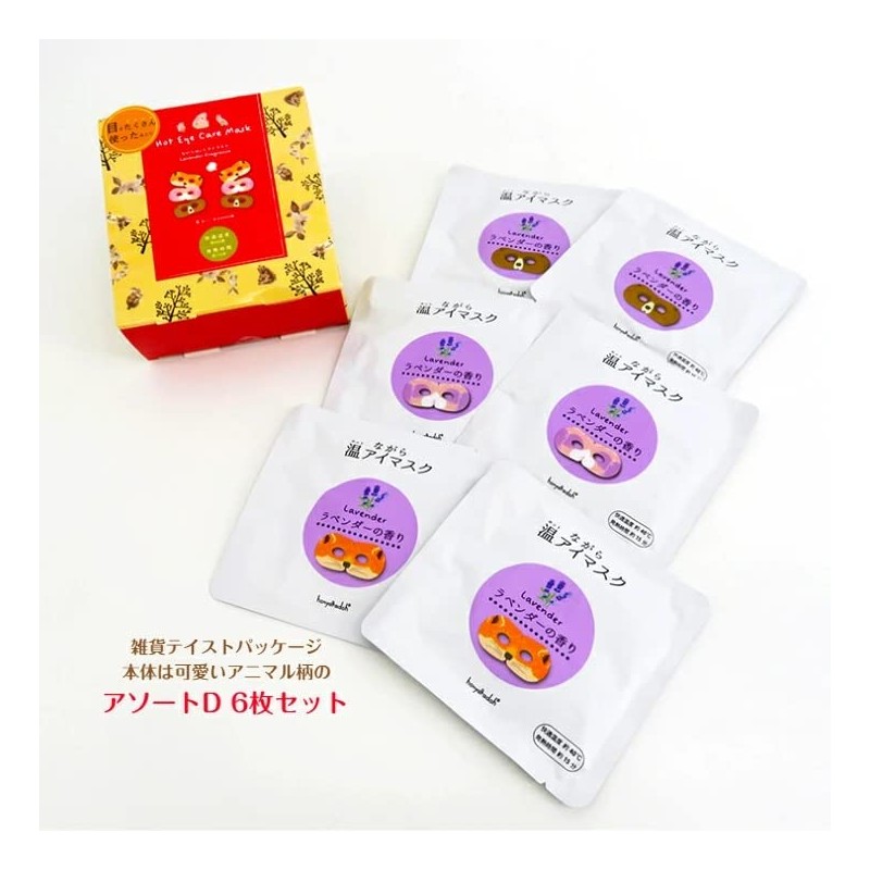 Warm Eye Mask, Pack of 6, While Hot Eye Mask, Lavender Scent, Honyarado, Assorted D, Aroma, Hot Eye Mask, Animal Pattern, Scandinavian Taste, Disposable Eye Mask (4)