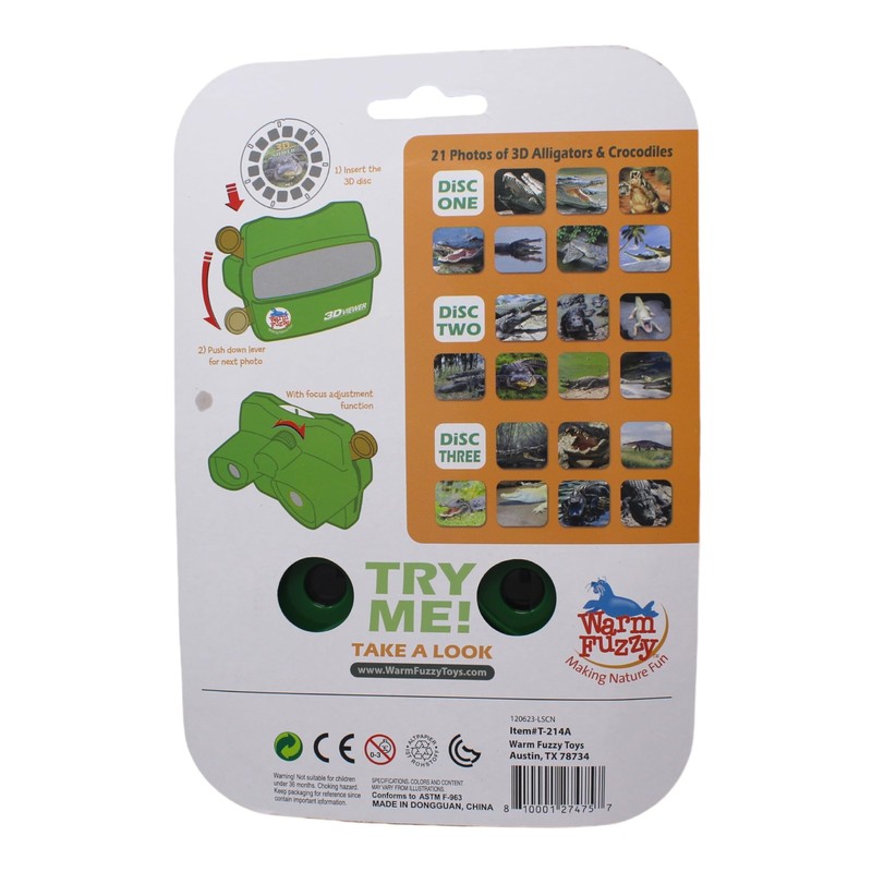 Cool 3-D Viewer with 21 Photos of 3-D Space Images. This Viewer is Compatible With Other Warm Fuzzy 3-D Viewers. Press lever to view each colorful photos. Contains 3 disks. Viewer is 4.5". For Ages 3 and up.