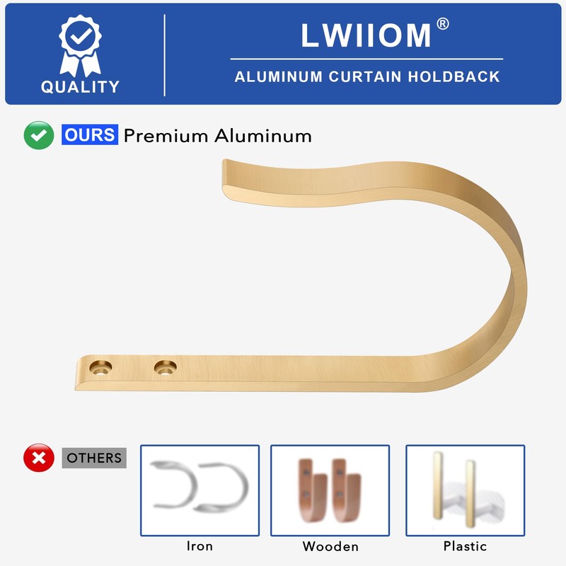 - 【PREMIUM ALUMINUN】–Lwiiom warm gold curtain holdbacks are crafted from solid aluminum which will NEVER rust for a lifetime of use
