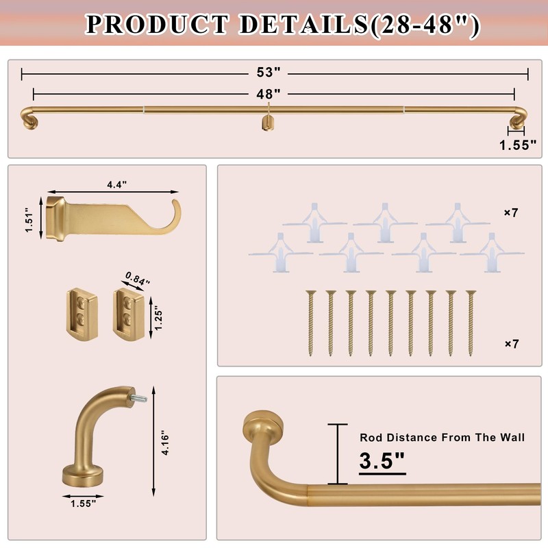 Transform your living space with our premium curtain rods for windows, designed to elevate both style and functionality in any room.These adjustable curtain rods for windows can extend from 28 to 48 inches, allowing them to fit a variety of window sizes seamlessly.!