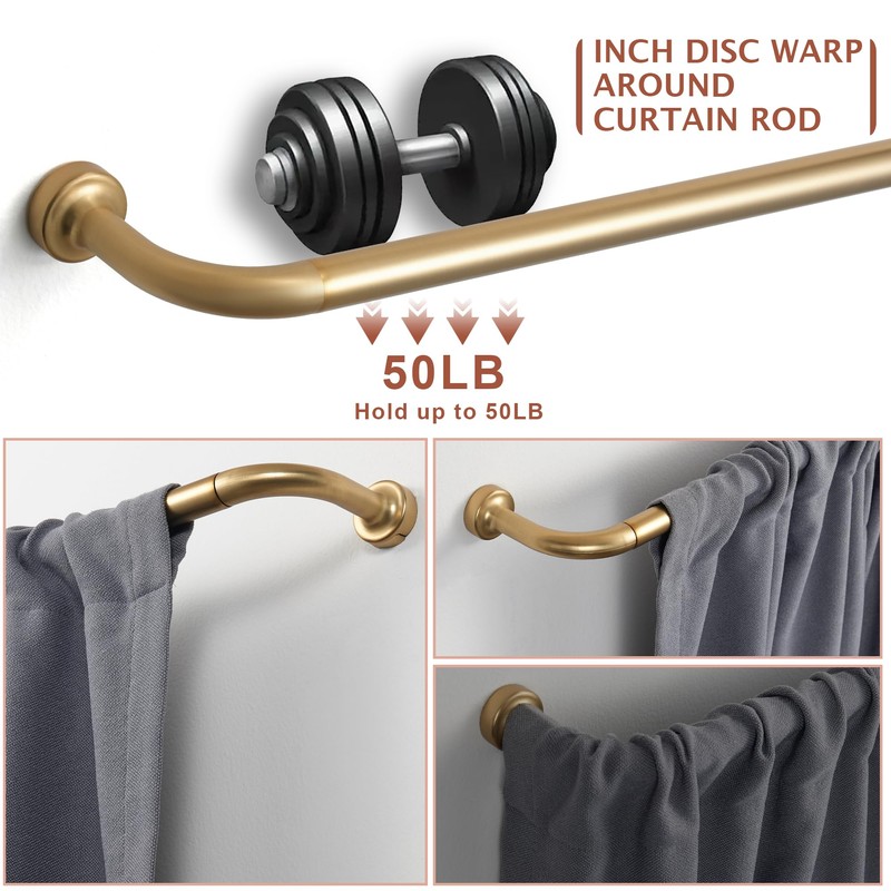 Warm Gold Curtain Rods for Windows 28 to 48",1 Inch Disc Wrap Around Curtain Rod with Aluminum Finials and Brackets,No Screw Disassembly Adjustable Blackout Curved Room Darkening Curtain Rod