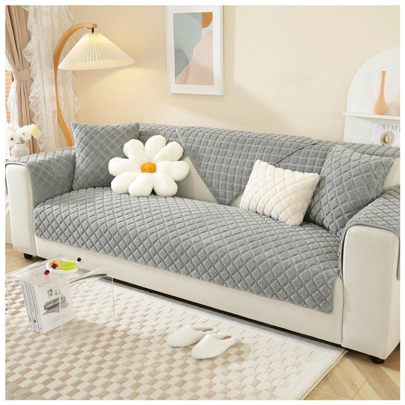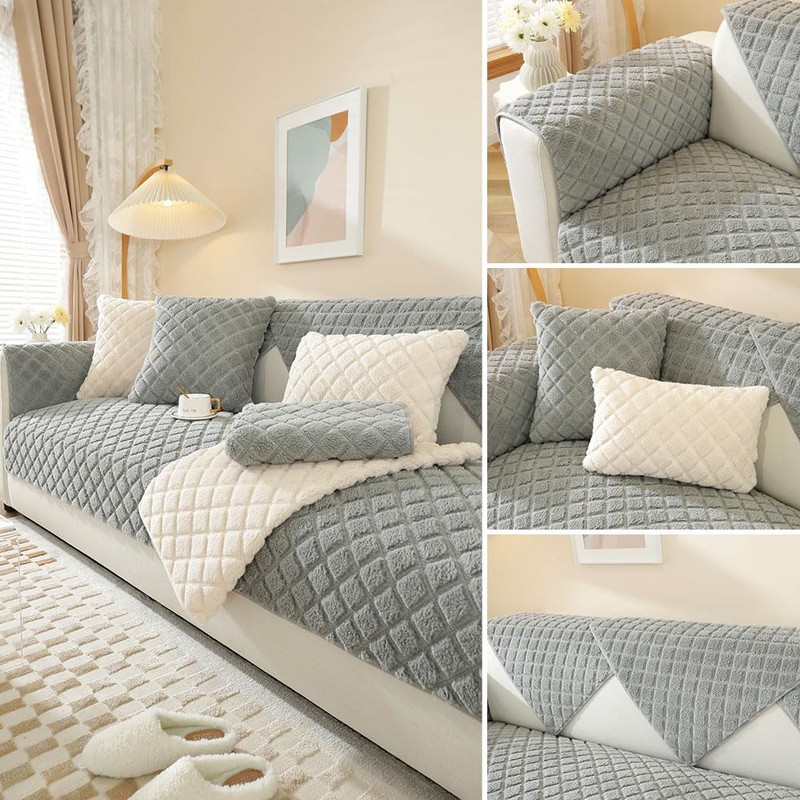 Warm Plush Sofa Cover, Washable Non-Slip Sofa Cushion Cover, Soft Fuzzy Sofa Slipcover for 1/2/3/4 Seat/L Shape/Corner Sofa, Durable Furniture Protector for Kids, Pets (Light Grey, 70*120cm)