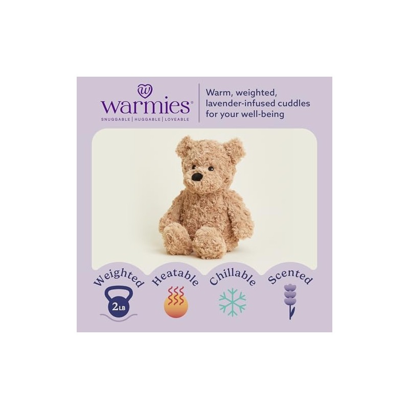 warmies Microwavable & Weighted Stuffed Animals, Brown Curly Bear - Heated Stuffed Animal Plushie for Warmth & Comfort - Cute Soft Plush Toys for Adults & Children (Boys, Girls, Babies & Toddlers)