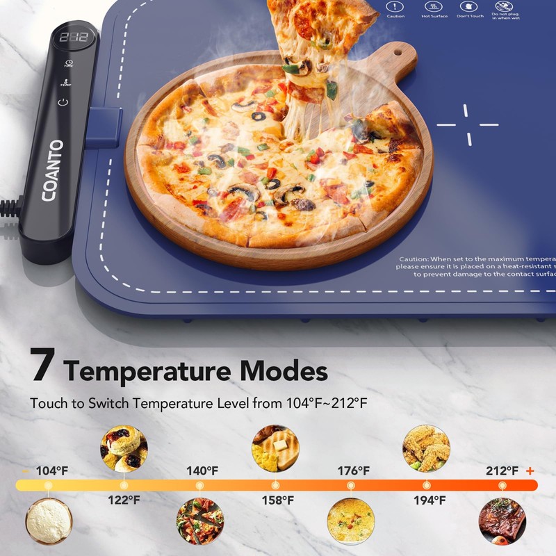- Say goodbye to cold dishes with our warming mat for food. The COANTO food warmer delivers rapid, uniform heating across a large area, making it perfect for social dining and get-togethers. No more cold spots or waiting for food to warm up