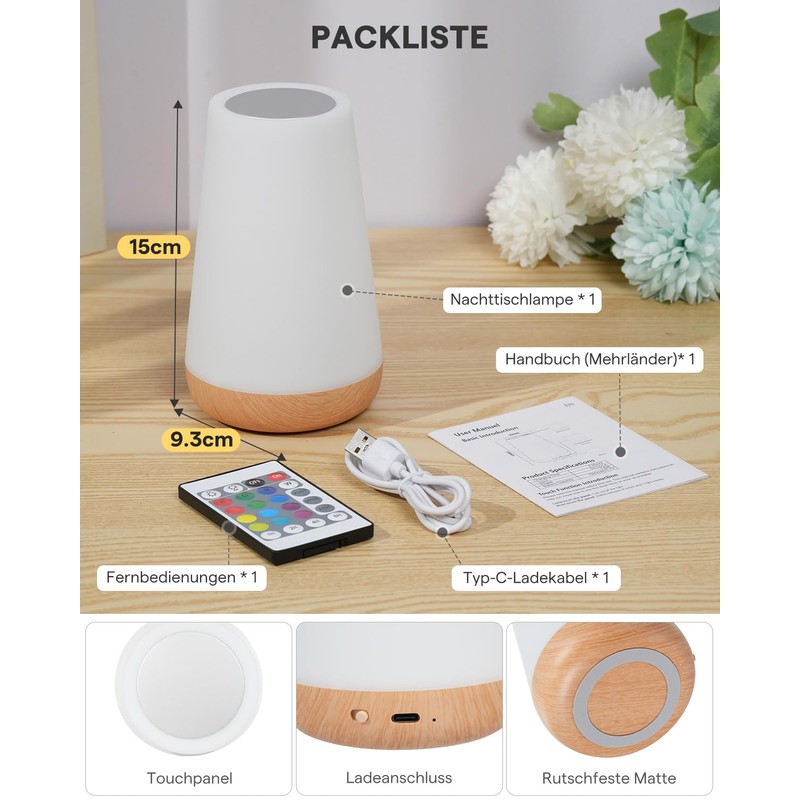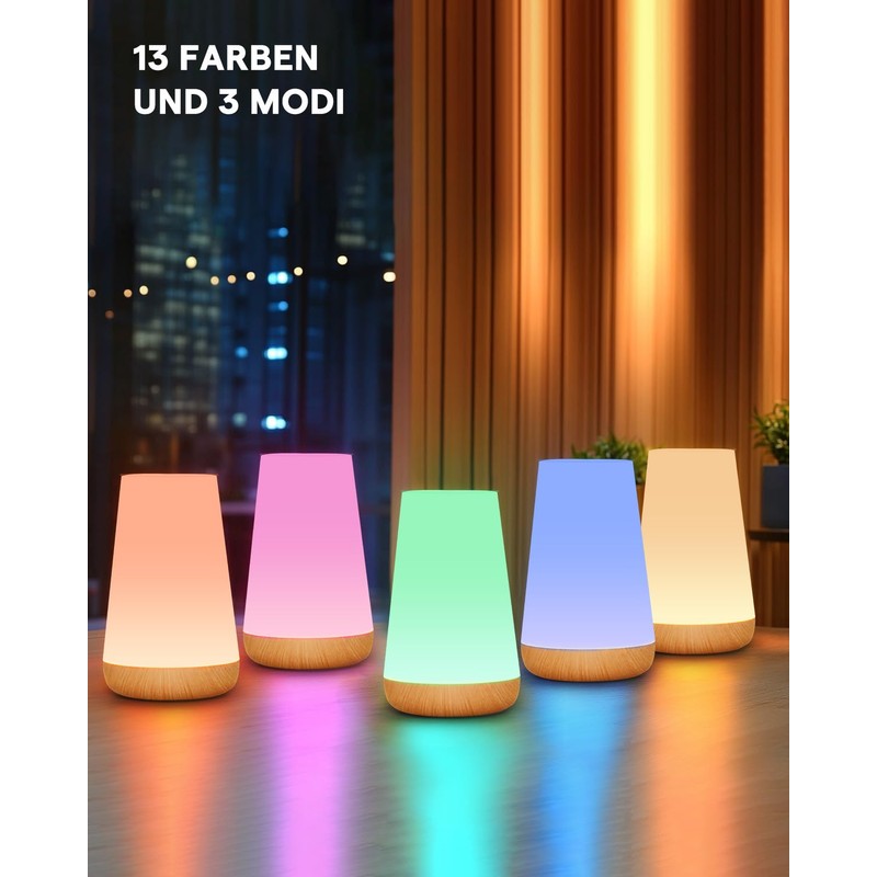 - 13 RGB colour changing: you can switch the LED table lamp wirelessly in 13 colours and 4 light modes to create the right lighting atmosphere for different scenes. You can use the small touch table lamp as an ambient light at parties, birthdays, weddings or candlelight dinners