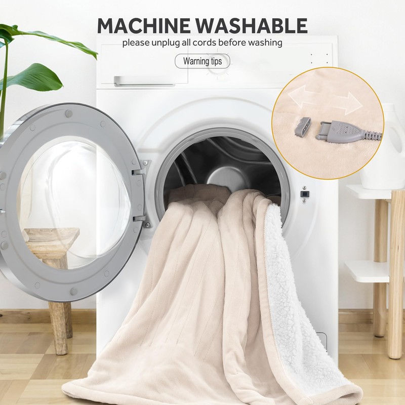 - 【Soft Cozy Material & Machine Washable】220GSM flannel + 220GSM Sherpa soft cozy heated throw blanket boasts beyond-ordinary thickness to ensure exceptional warmth even without electricity. Thick but lightweight hardly feel the heating elements while you sleep. It's conveniently machine-washable for effortless maintenance.