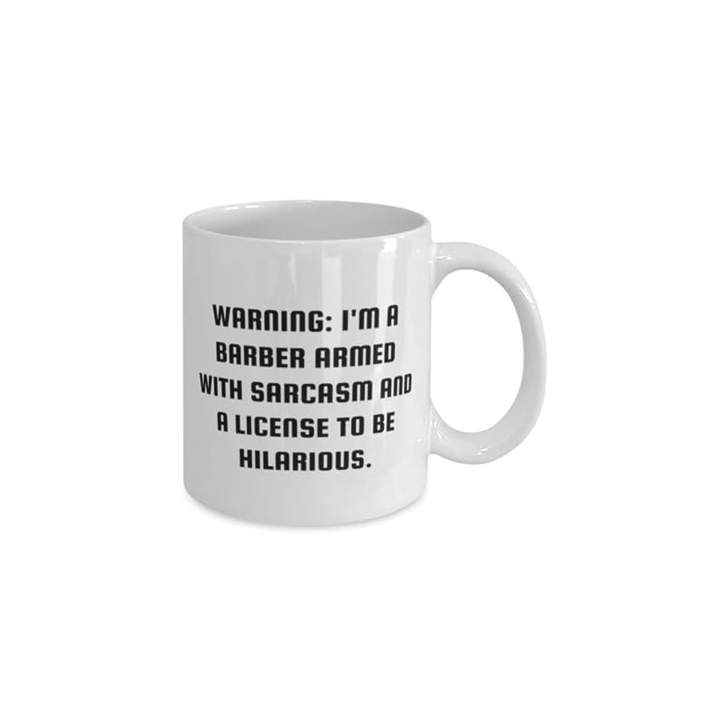 WARNING: I'M A BARBER ARMED WITH SARCASM AND A LICENSE TO BE. 11oz 15oz Mug, Barber Cup, Nice Gifts For Barber from Friends, Barber gift, Barber mug, Barber scissors, Barber shears, Barber pole