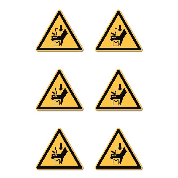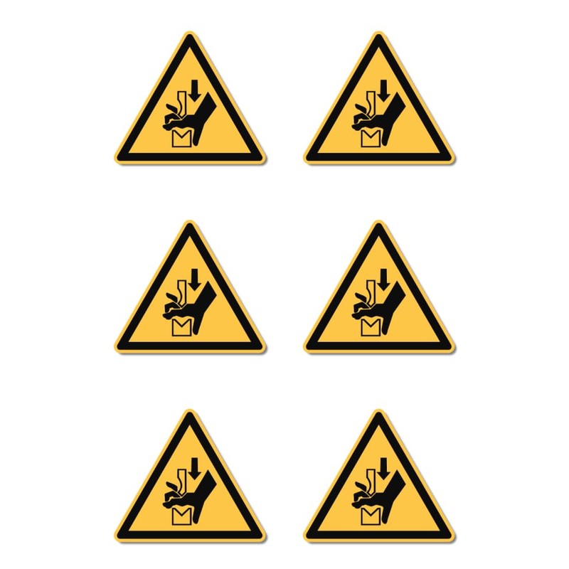 Warning of risk of squeezing the hand between tools of a press: W030 - DIN EN ISO 7010 / ASR A1.3 - sticker: 5 cm, pack of 6