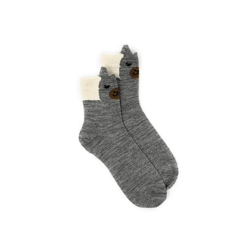 WARRIOR ALPACA SOCKS - Children's Baby Alpaca Wool Peek-A-Boo Paca Face Socks, Non-Skip Grips (Grey/Ivory, US Shoe Size 6-9)