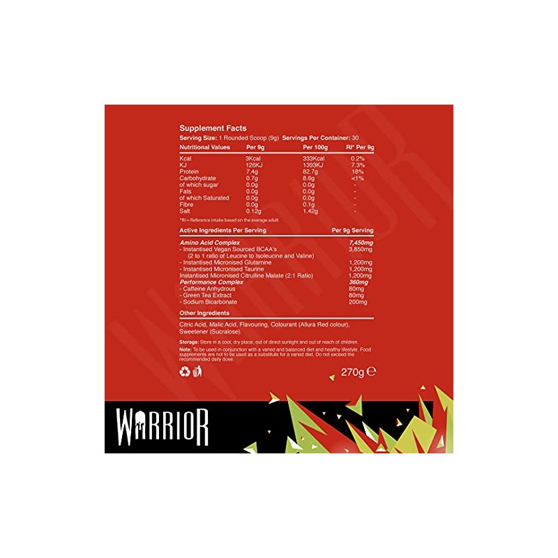 Warrior, Amino Blast - 270g - Branch Chain Amino Acid Powder (BCAA) - Helps Build Lean Muscle and Speed Up Recovery, Strawberry Kiwi