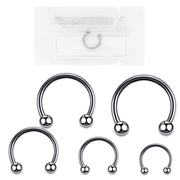 Warrior PTYM-01/PTYM-002 Circular Barbell Septum Nose Tragus Helix Sterile Cartilage Titanium G23 Single Piece Size 16G (1.2 mm) Single Piece, Titanium