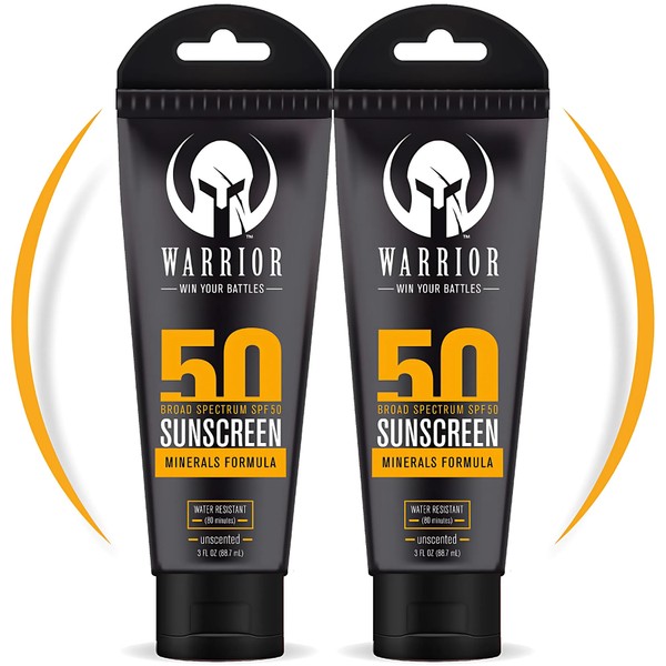 WARRIOR - WIN YOUR BATTLES- SPF 50 Sunscreen Lotion - 80 Minutes Water Resistant, Reef Safe, Unscented Lotion Non-Nao Zinc & Non-NanoTitanium Sunscreen with Mineral Formula - 3 Fl Oz - Pack of 2