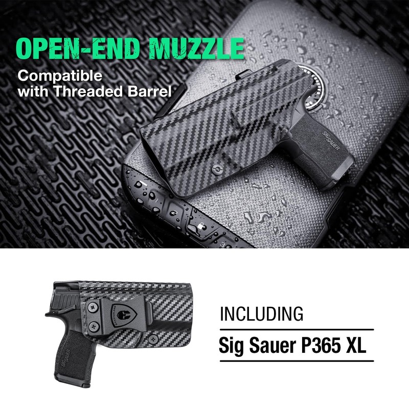 - COMPENSATOR & OPEN MUZZLE CUT - Holster for P365XL can accommodate with various compensators - Open muzzle end accommodate with threaded barrel