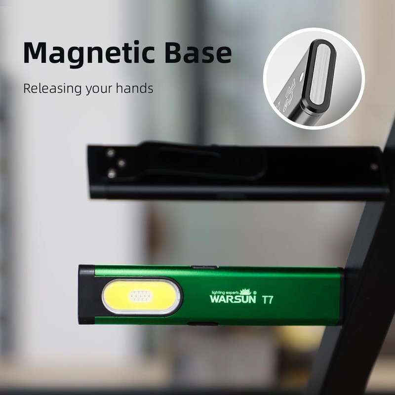 WARSUN T7, Flat Flashlight, Small Pocket Flashlight, Every Day Carry, Thin Flashilight, Led Magnetic Flashlight, USB-C Rechargeable, COB Side Light, Multiple Modes Flashlight