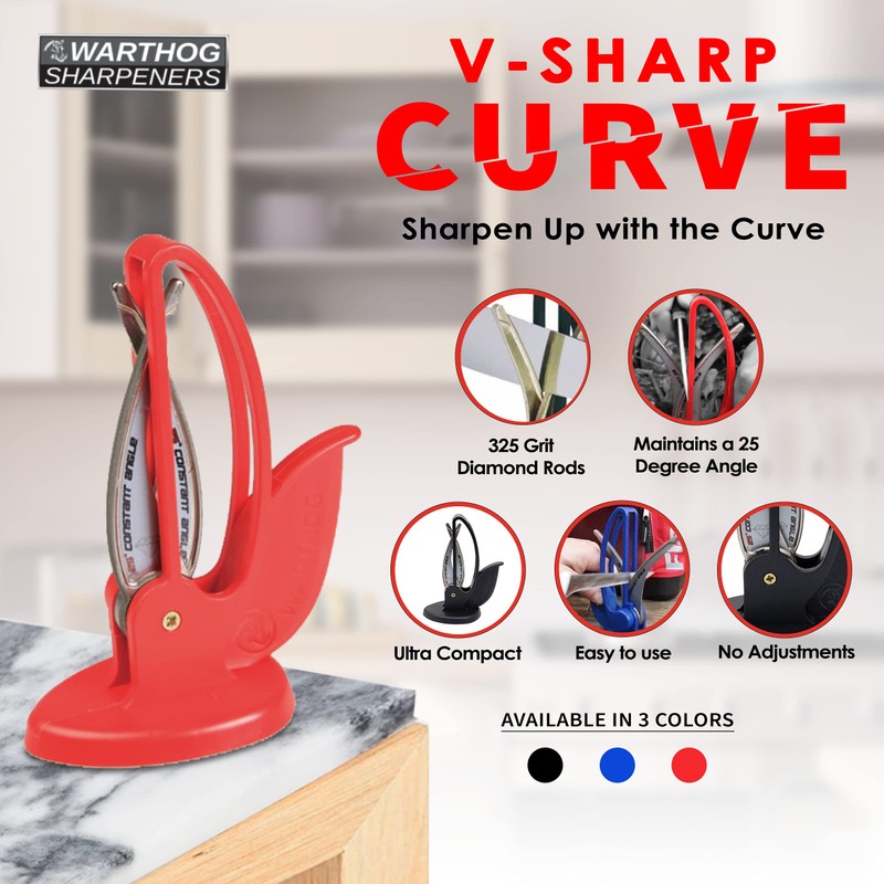 Warthog Curve Compact Diamond Sharpener. The Curve is an incredibly easy to use, high-quality sharpener for quick action. With non-adjustable rods all you need to do is keep your blade flat against the Guide and let the sharpener do the rest.
