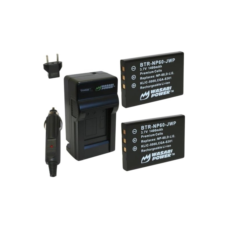 This Wasabi Power Kit includes: 2 Hi-Capacity batteries with premium Grade A cells, 1 mini rapid charger (110/240V) with fold-out AC prongs, Car adapter to charge from your vehicle's DC/lighter outlet, European plug adapter for travel. All items meet or exceed OEM standards and come with a 3-year manufacturer warranty.
