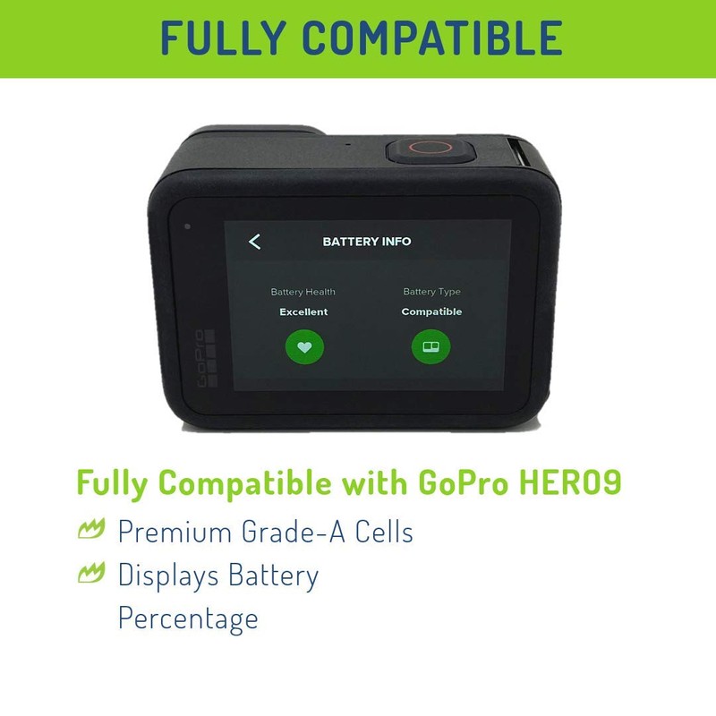 Get Wasabi Power for your GoPro HERO 9 Black. Featuring 1730mAh, premium grade-A cells, and a 3-year Wasabi Power warranty, this battery works great as a spare or replacement. The Wasabi Power battery is compatible with original equipment excluding the charger. Includes 2 batteries. Need GoPro accessories? Buy a GoPro battery and GoPro charger Wasabi Power product. They're a great replacement! Works with firmware v1.50.