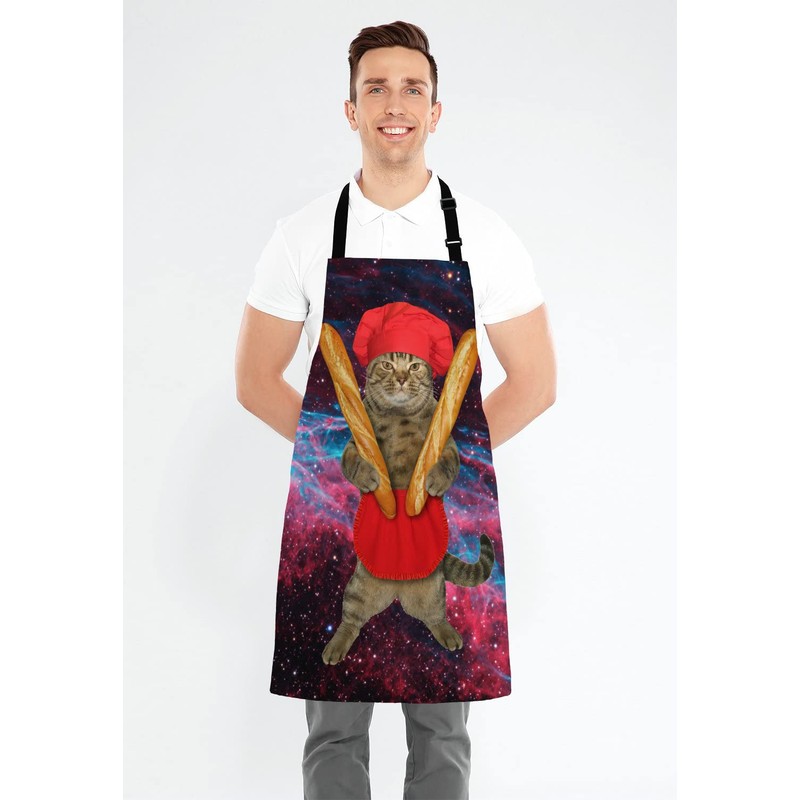 This apron is made of polyester material that is soft to the touch and free of chemicals. It measures 31 inches long by 27 inches wide and has an adjustable strap neck. Suitable for men and women, any chef, artist, shop worker, factory worker, waiter, artist, butcher, host, or even for festive costumes. These unique aprons are perfect for any occasion. Activity and task such as cooking, baking, gardening, arts and crafts, housewarming parties, BBQ, serving, cleaning, painting and so on. Ideal for home use.
