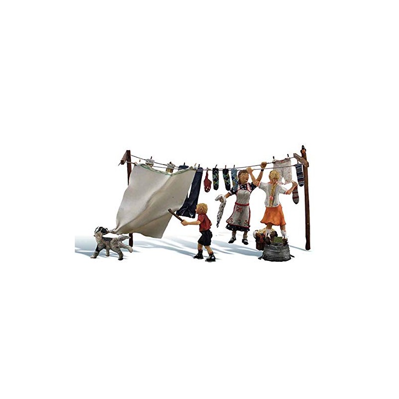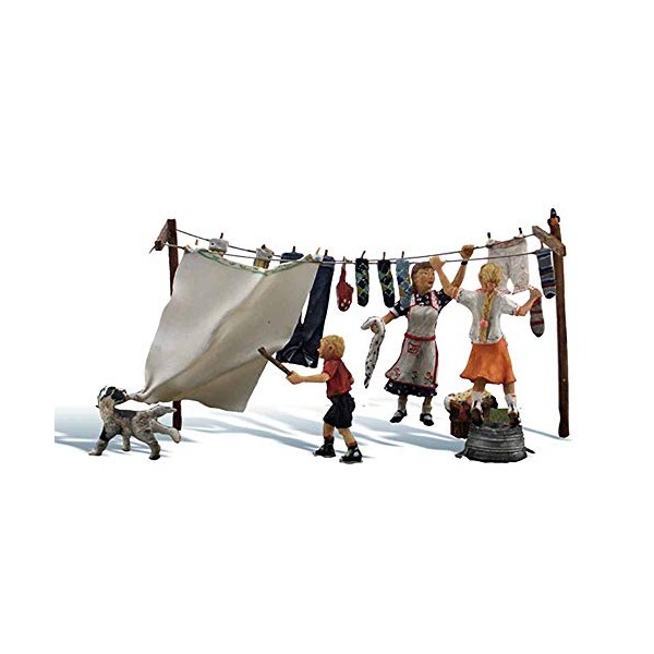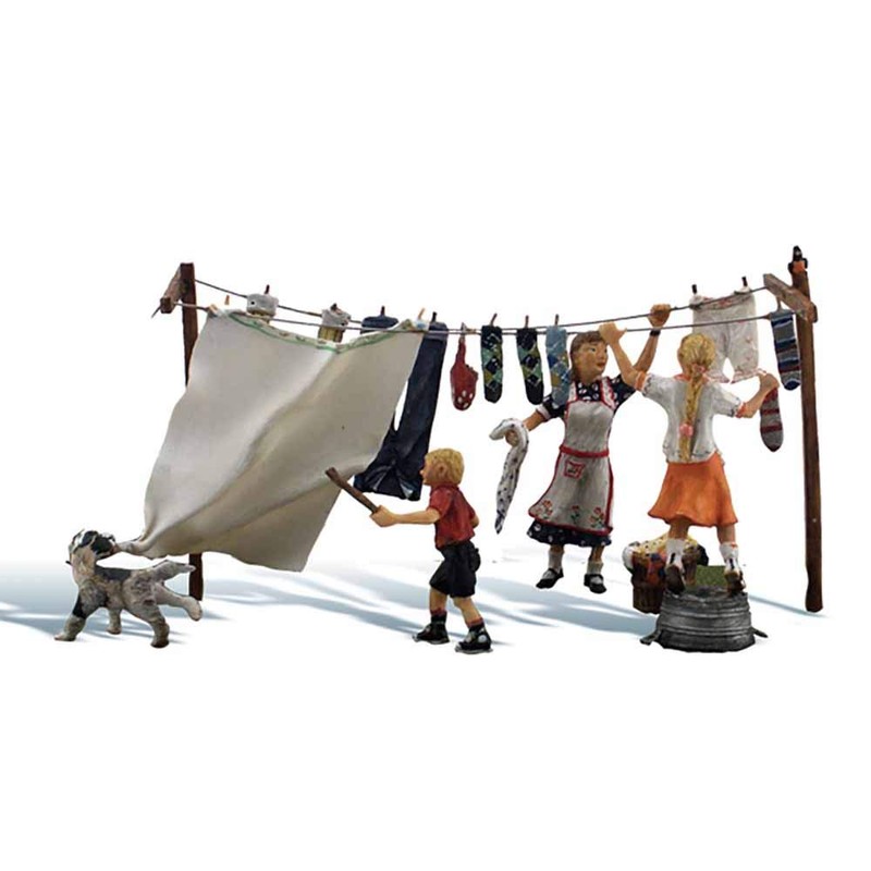 Wash Day Getaway (3 Figures, Dog & Accessories) HO Scale Woodland Scenics