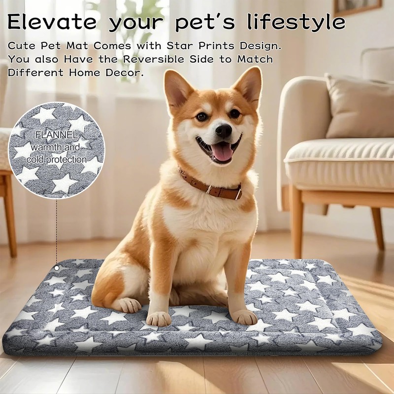 Washable Dog Bed Mats - Reversible Kennel Mat (Cool & Warm), Non Slip、 Cozy Star Pattern Sleeping Pad for Small Medium Large Dogs, All-Season Pet Bed (Gray, M)