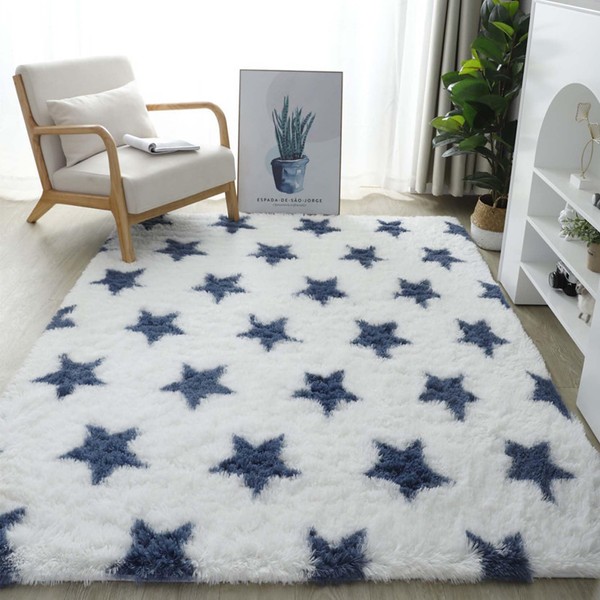Washable Fluffy Rug, 60x120CM Extra Thick 3.0 cm Rectangular Rug Mat, Absorbent Non-Slip Carpet for Bedside, Sofa, Porch, Entrance. (Star)