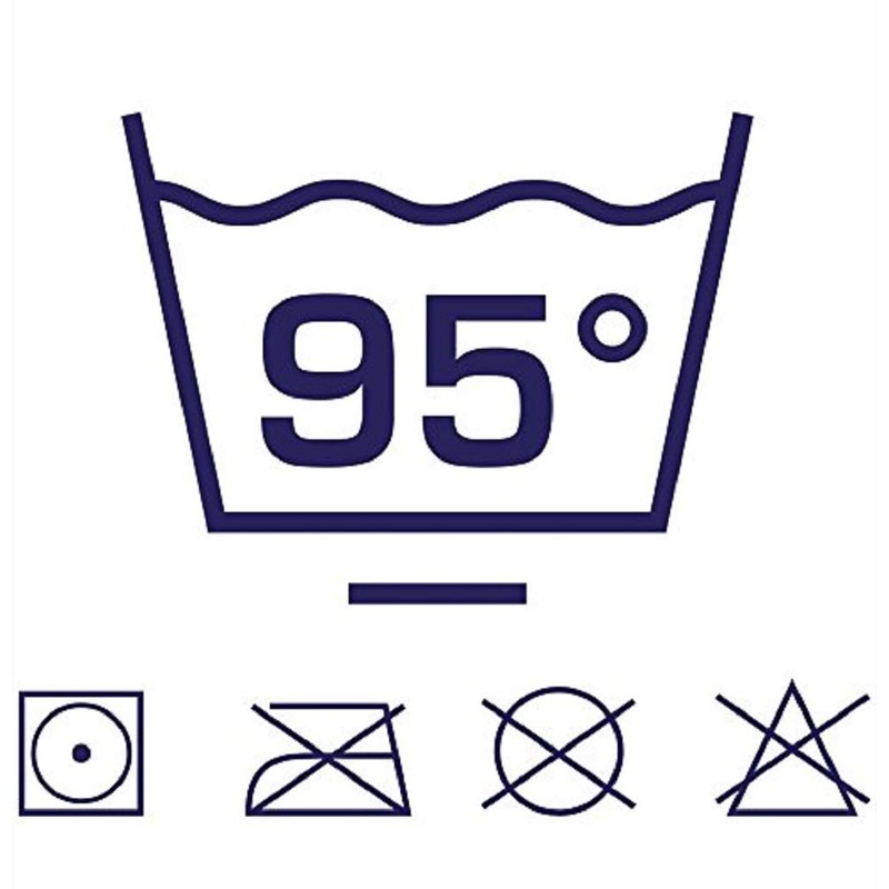 - Wash up to 95˚C, Tumble dry on Medium heat