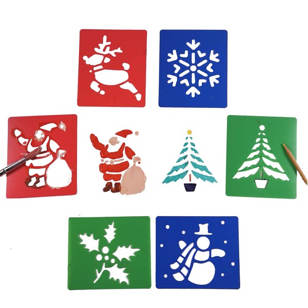 - BCreative Christmas themed stencils. Christmas Tree, Santa, Snowflake, Snowman, Reindeer and Holly. Ideal for card and gift making with paints, crayons, pencils and felt tip pens.