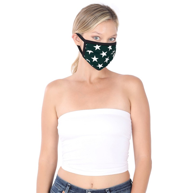 Washable Reusable Cotton Face Mask Pack of 3 Print STAR HGREENIVORY