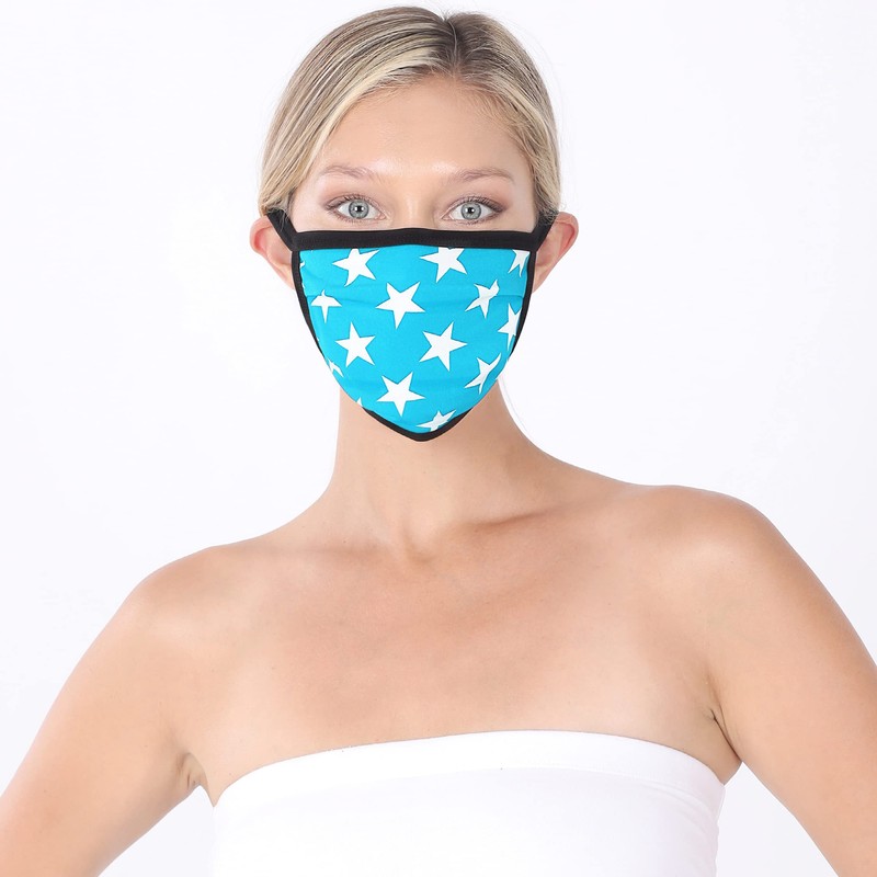 Washable Reusable Cotton Face Mask Pack of 3 Print STAR ICEBLUEIVORY