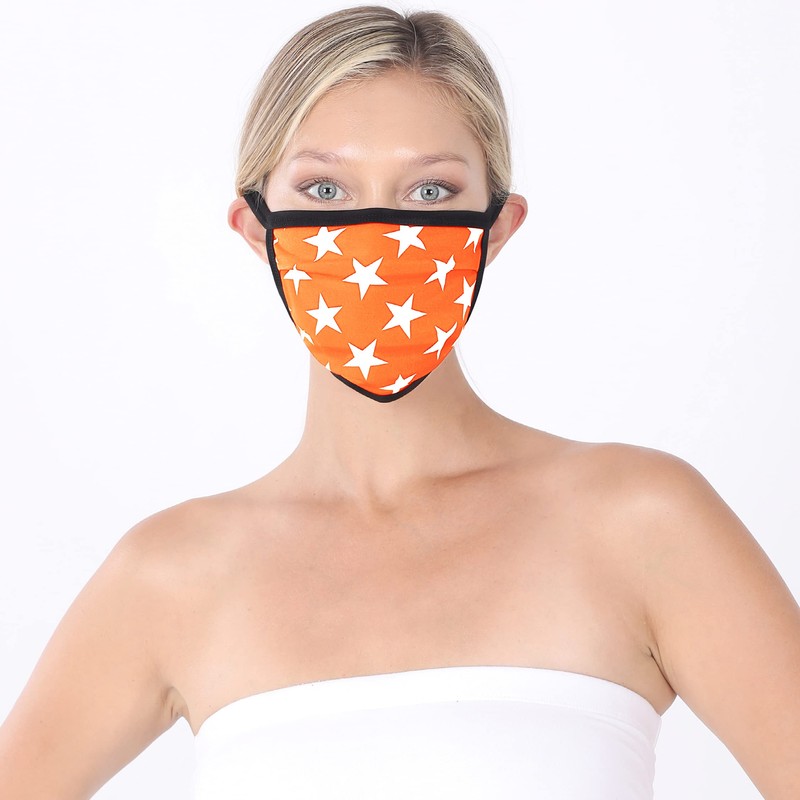 Washable Reusable Cotton Face Mask Pack of 3 Print STAR NEONBRIGHTORANGEIVORY