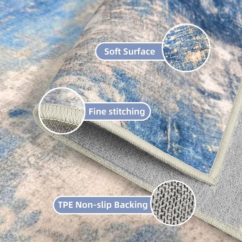 Washable Rug 6x9 Area Rugs: Abstract Rugs for Living Room Soft Non-Slip Machine Washable Area Rug Foldable Non Shedding Indoor Low Pile Carpet for Bedroom Dining Room Nursery Office-Blue Rug 6x9