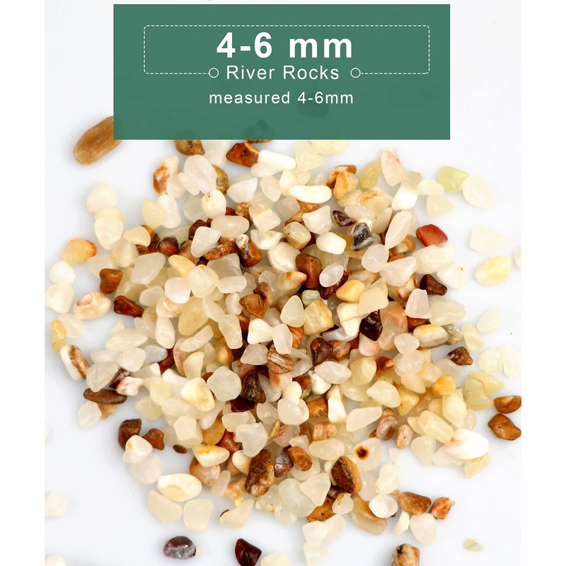 - 【Size and Parameters】2lb 4-6 mm assorted colored washed pea gravel mixed with clear, red, yellow and green rocks. Washed decorative garden rocks are much more beautiful and special. The color is different between dry and wet.