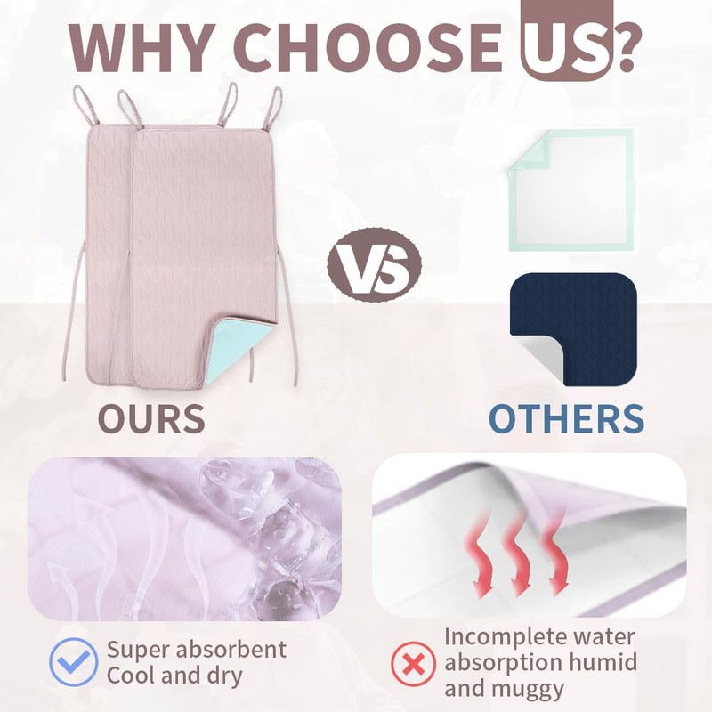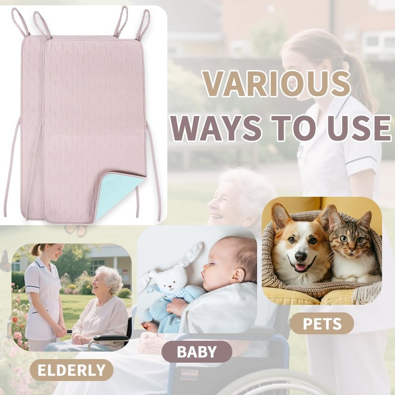 WASHINBED Highly Absorbent Wheelchair Incontinence Pad for Elderly Care (Pink, 2pc)
