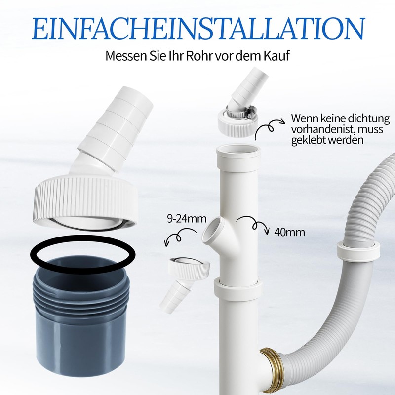 - Compatibility: drain adapter suitable for dishwasher, washing machine, tumble dryer as well as the siphon of the kitchen sink or bathroom sink. Please confirm whether it corresponds to the size you need before purchase