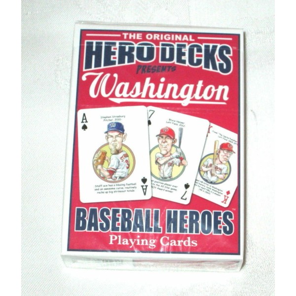 Each deck of playing cards features fifty-two of the greatest players by position and era in Washington baseball history. This deck is sure to be a HOME RUN with Nationals fans of all ages!