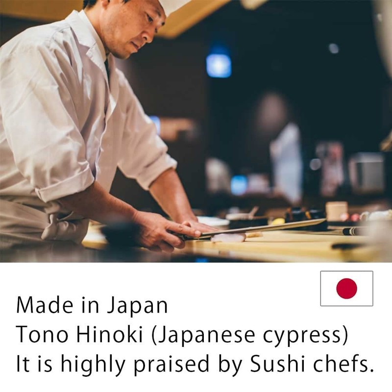 • This cutting board uses premium Tono Japanese cypress that's carefully selected. Hinoki has been used as the finest material for cutting boards for a long time. It is highly praised by Sushi chefs. Craftsmen use a smoothing plane for the final touch and sand paper for extra polishing.