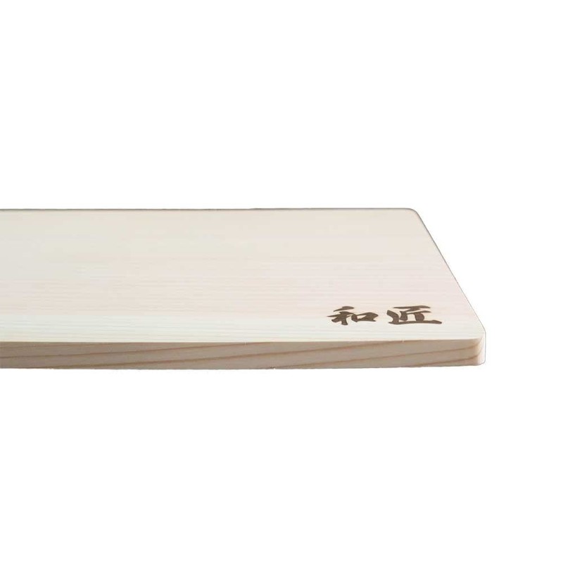 This cutting board uses premium Tono Japanese cypress that's carefully selected. Hinoki has been used as the finest material for cutting boards for a long time. It is highly praised by Sushi chefs. Craftsmen use a smoothing plane for the final touch and sand paper for extra polishing. It creates a unique polished surface without ruining the beautiful wood grain. The cypress bark is gentle on your blade and makes your knife last longer. It has the best relationship with the blade, making it last longer and your hands don't get nearly as tired compared to other materials. Handling Instructions 1. Before Use You may notice some oil and fat contents called resin on the product's surface or shrink wrap. Resin is a component peculiar to conifers and contains hinokitiol. This phenomenon is a result of restraining wood from drying. Rest assured you can use it safely as it has no effect on food hygiene. 2. Every Use Lightly soak it in water before use. The wet surface makes it more difficult to have food odors, stains and black spots. 3. After Use Wash with the grain using a scrubbing brush, wipe it off with a cloth and dry it in the well-ventilated shade. Cautions A dishwasher may be used; however, rinse thoroughly after washing. The use of bleach may damage the wood quality and causes it to have a frayed surface. Rinse thoroughly first with water and soap when cutting fish and meat as the hardened proteins can cause odors. The wooden cutting board may warp over time. When it warps, turn the convex side facing up and place a wet cloth on the cutting board. Put heavy weight (approximately 22 pounds) on the cutting board and leave it there for about half a day to restore it.