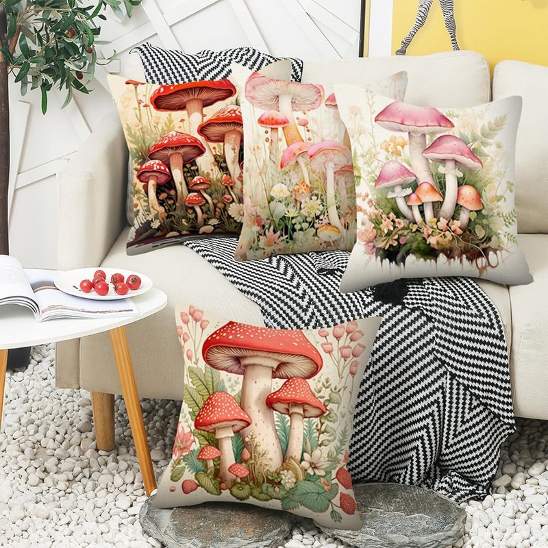 - HIGH-QUALITY PRINTING - Using a four-color printing system, the pillow cover maintains a high level of color fidelity, ensuring the mushroom print appears vivid and true to its original design. This feature guarantees long-lasting vibrancy and resistance to fading, making it a durable and attractive addition to your home decor ensemble.